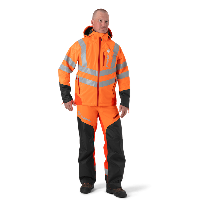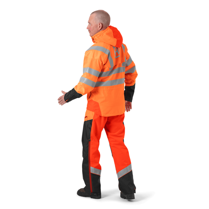 Pantalon de pluie de haute qualité fabriqué en polyester laminé résistant et extensible qui, avec ses coutures laminées, constitue un vêtement imperméable mais respirant. Tissu de renforcement sur les zones situées au-dessus du genou et sur la partie inférieure de l’entrejambe. L’ourlet élastique à l’arrière et le réglage par velcro sur les côtés permettent un réglage facile et une tenue parfaite. Les caractéristiques telles que la fermeture éclair latérale longue simplifient la mise en place et le retrait du pantalon et les crochets pour lacets permettent de maintenir le pantalon en place. Homologation conformément à la norme EN343. Taille XS–XXL.